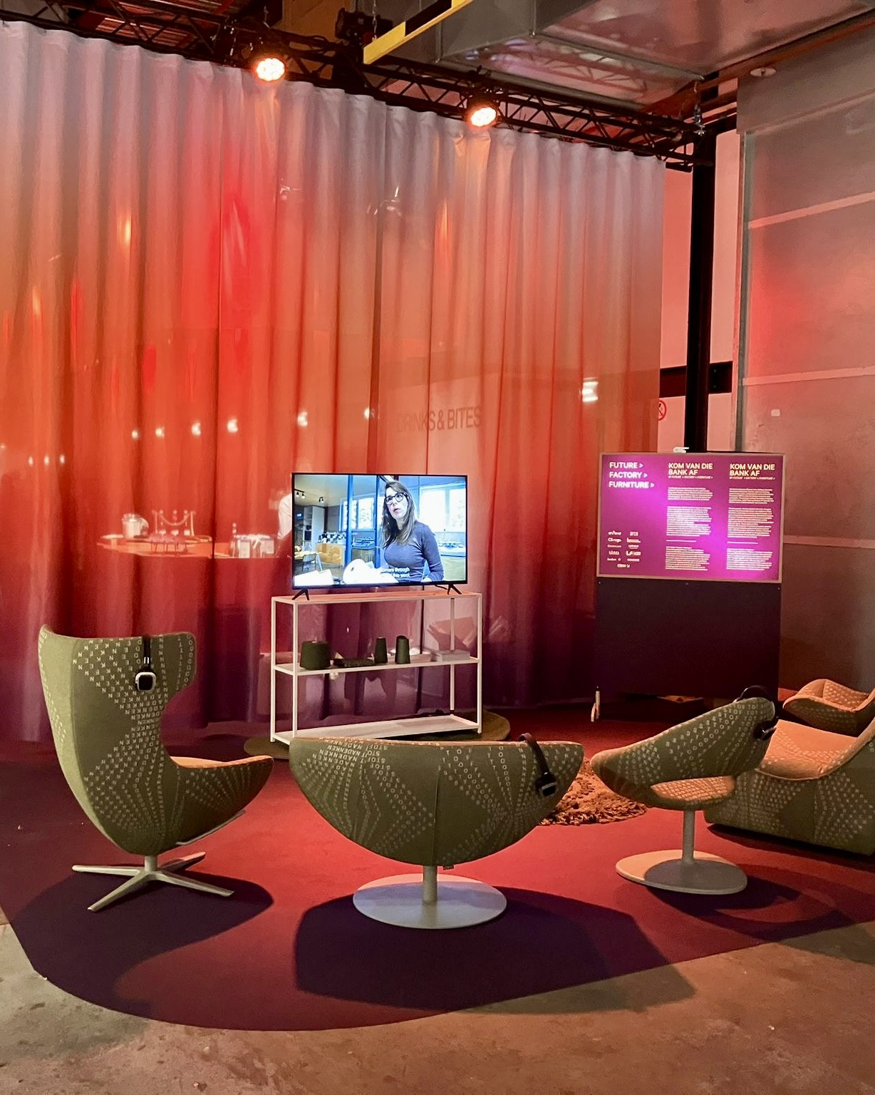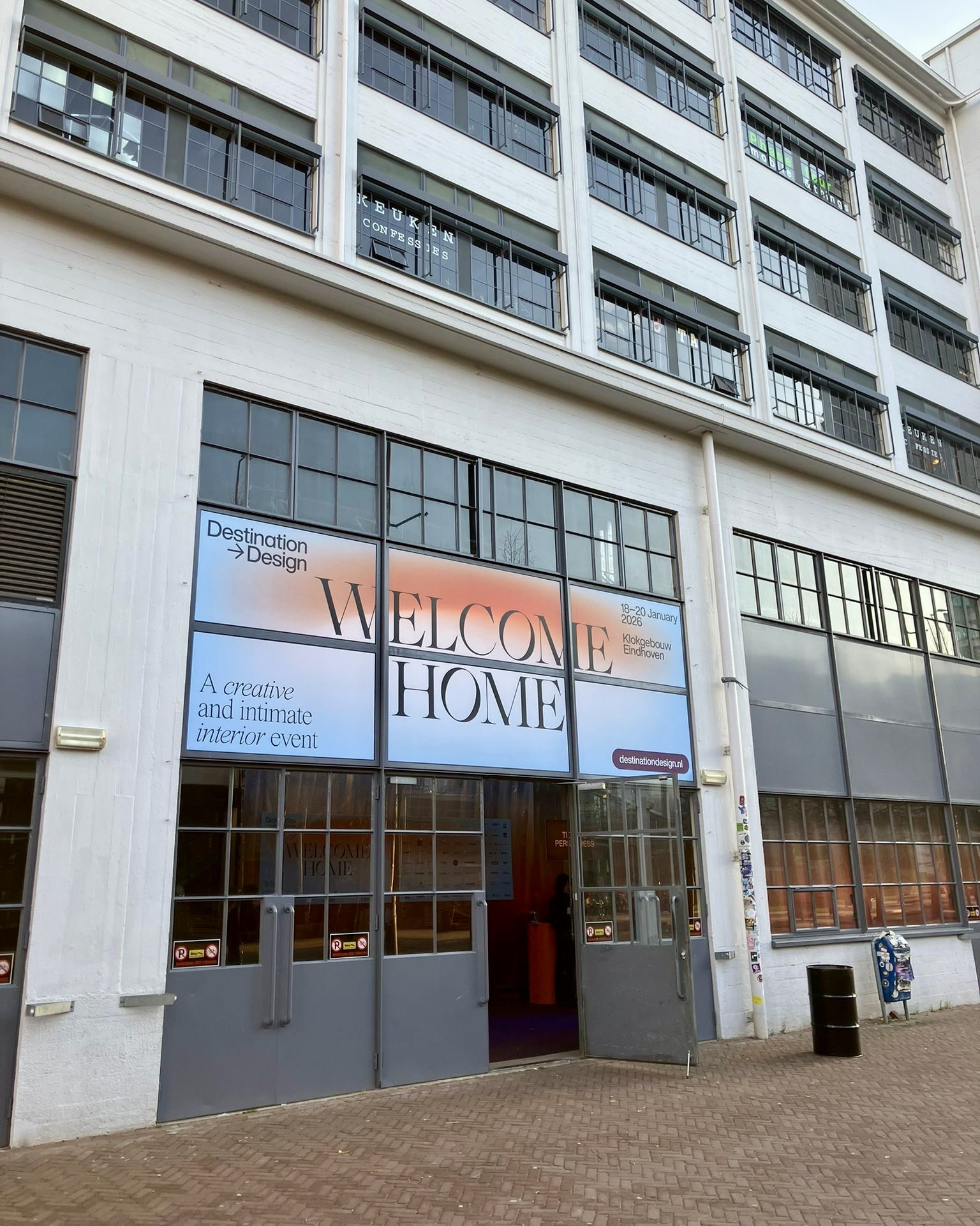 Destination Design is een onafhankelijk initiatief van LABEL Vandenberg, Leolux Furniture Group en Koninklijke CBM. Deze samenwerking is volledig zonder winstoogmerk: alle betrokken partijen dragen vrijwillig bij met als gezamenlijk doel het stimuleren van creativiteit, samenwerking en innovatie binnen de interieur- en designsector. Dit jaar kreeg het evenement een nieuwe visuele identiteit, ontworpen door Studio of Things, en een ruimtelijk ontwerp van Studio La Bolleur. Het industriële karakter van het Klokgebouw werd aangekleed met warme textiele kleuren. Een setting die voelt als thuiskomen.